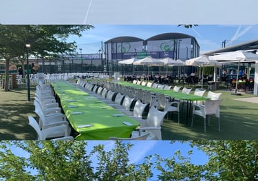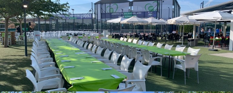 En La Sede Pádel Club, ofrecemos un espacio único con más de 6000 m². Disfruta de nuestras pistas de pádel, terraza, zona de barbacoa y actividades para toda la familia. Celebra tus eventos con nosotros y vive momentos inolvidables en un ambiente acogedor y divertido.